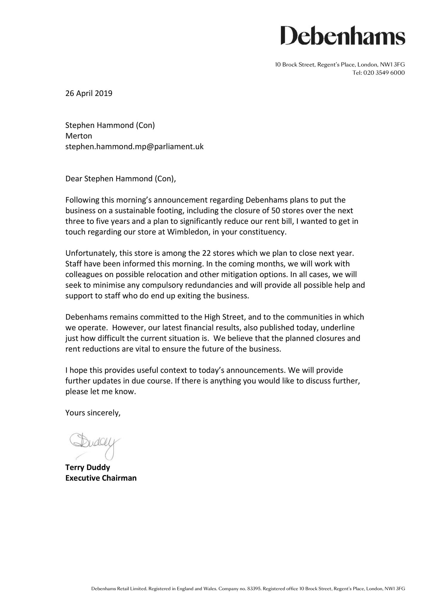 Stephen Hammond Mp On Twitter Debenhams Have Written To Me Today To Confirm Their Wimbledon Store Will Be Closing This Is Extremely Disappointing News It Is Urgent That We Ensure Our Local Developer Plans 25 Affordable Housing For 500 Unit Project